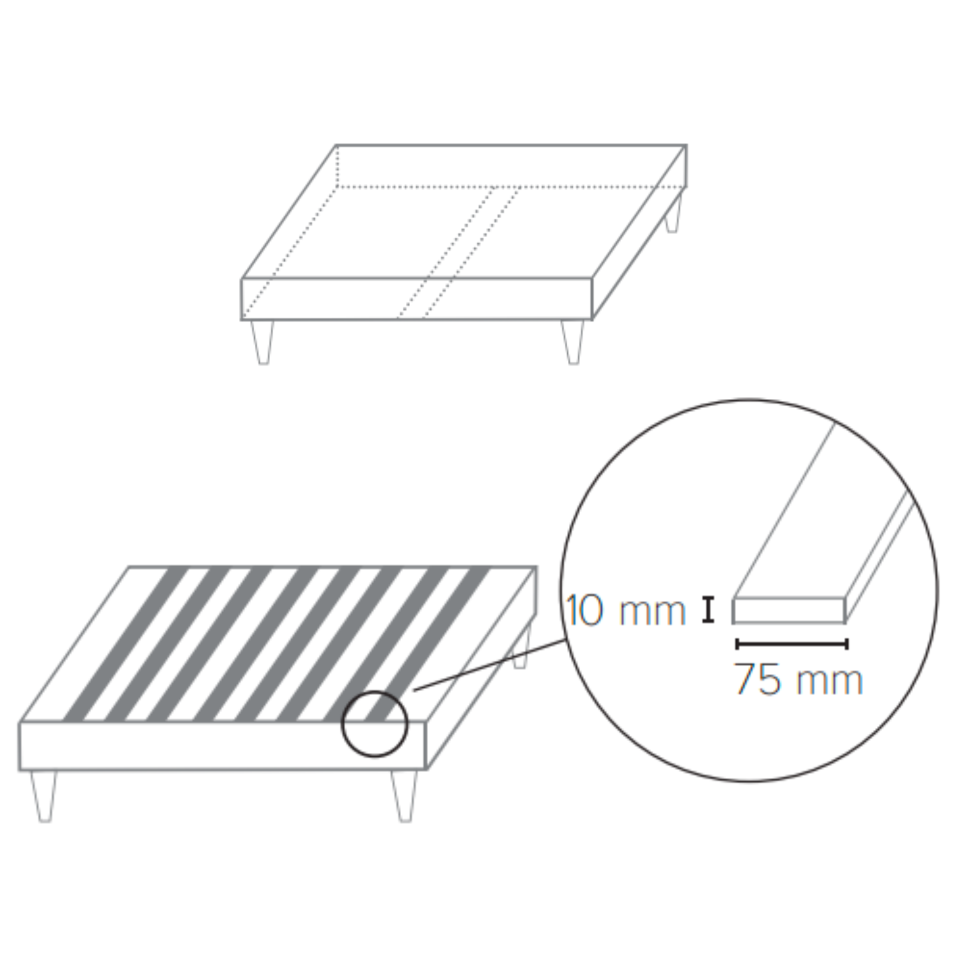 Superficie superior 14 lamas madera de 75 mm y 10 mm grosor